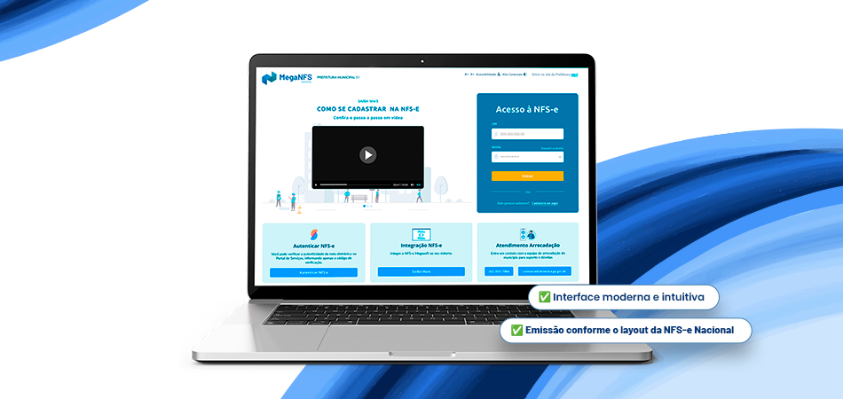 Como parte dessas melhorias, renovamos toda a tela de login do sistema de NFS-e, que agora conta com uma página moderna, intuitiva e visualmente aprimorada, oferecendo uma navegação mais agradável e responsiva.